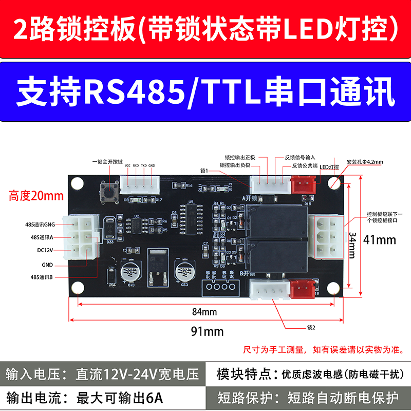 RS485/TTL通讯锁控板(2路)