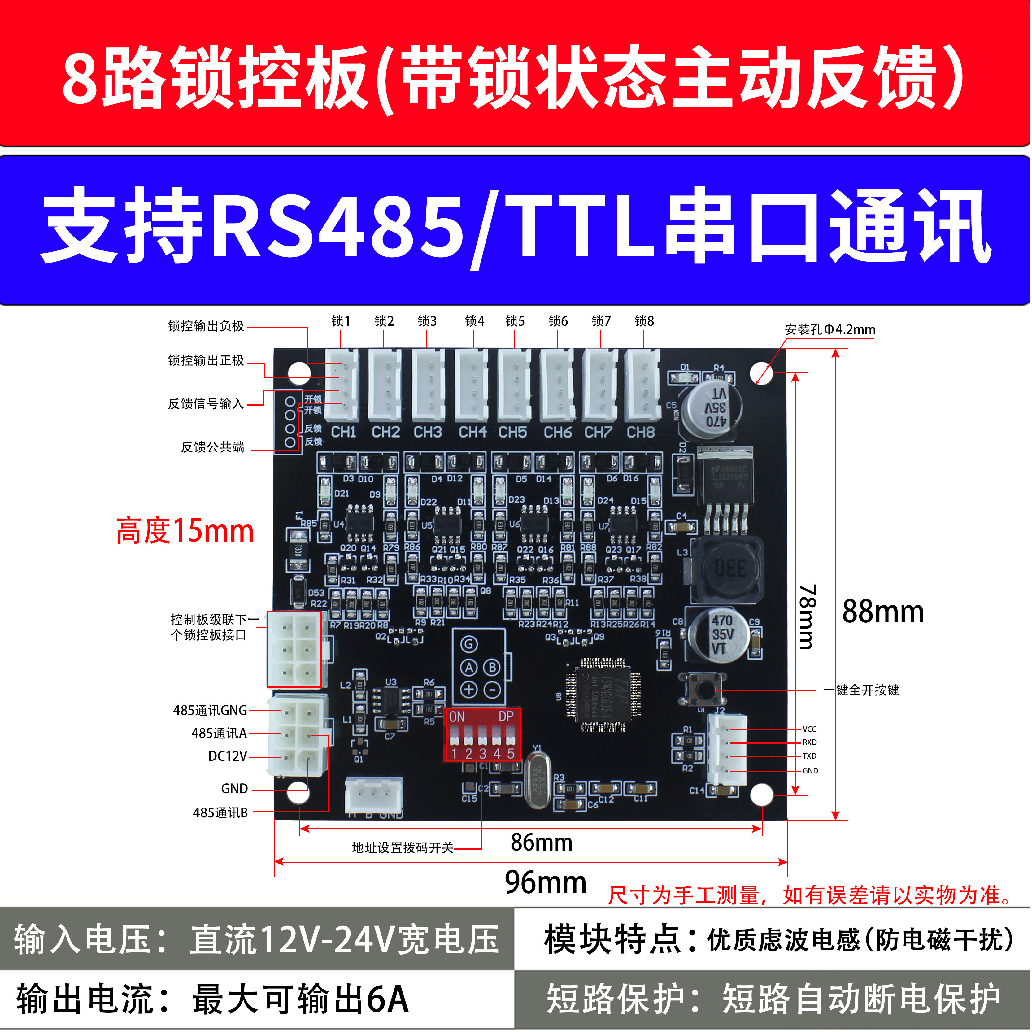 RS485/TTL通讯锁控板(8路)